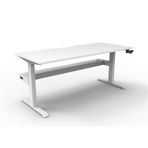 • Rapidline Boost single sided manual crank height adjustable workstation with cable tray. White top with white frame.