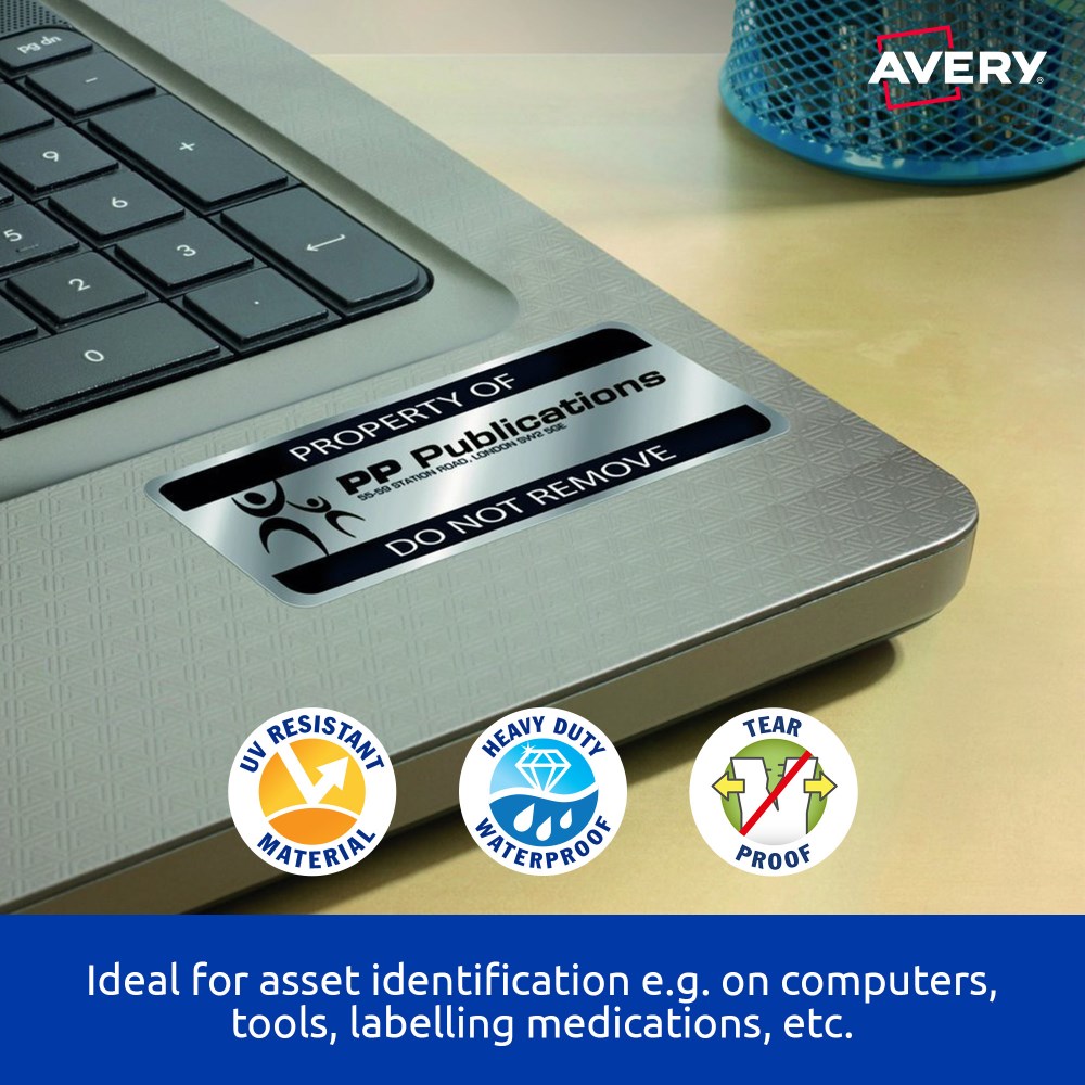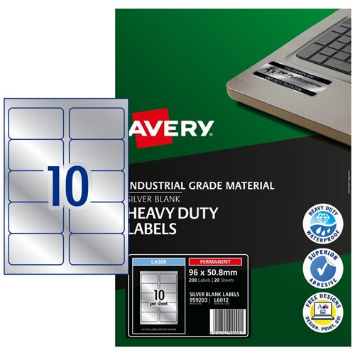Avery Heavy Duty Laser Labels Asset Tags Silver L6012 96x50.8mm 10UP 200 Labels