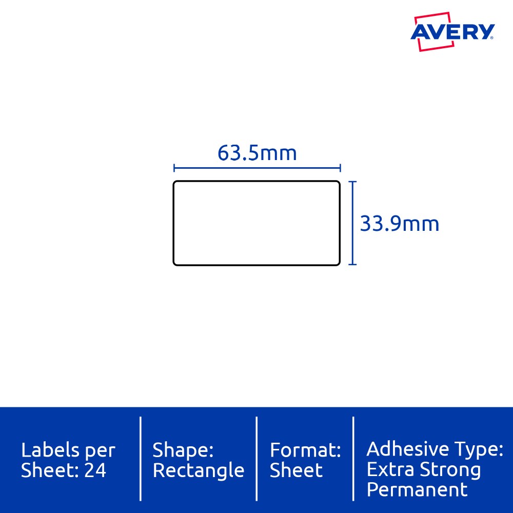 Avery Identification Laser Ultra Resistant White L7912 63.5x33.9mm 24UP 240 Labels