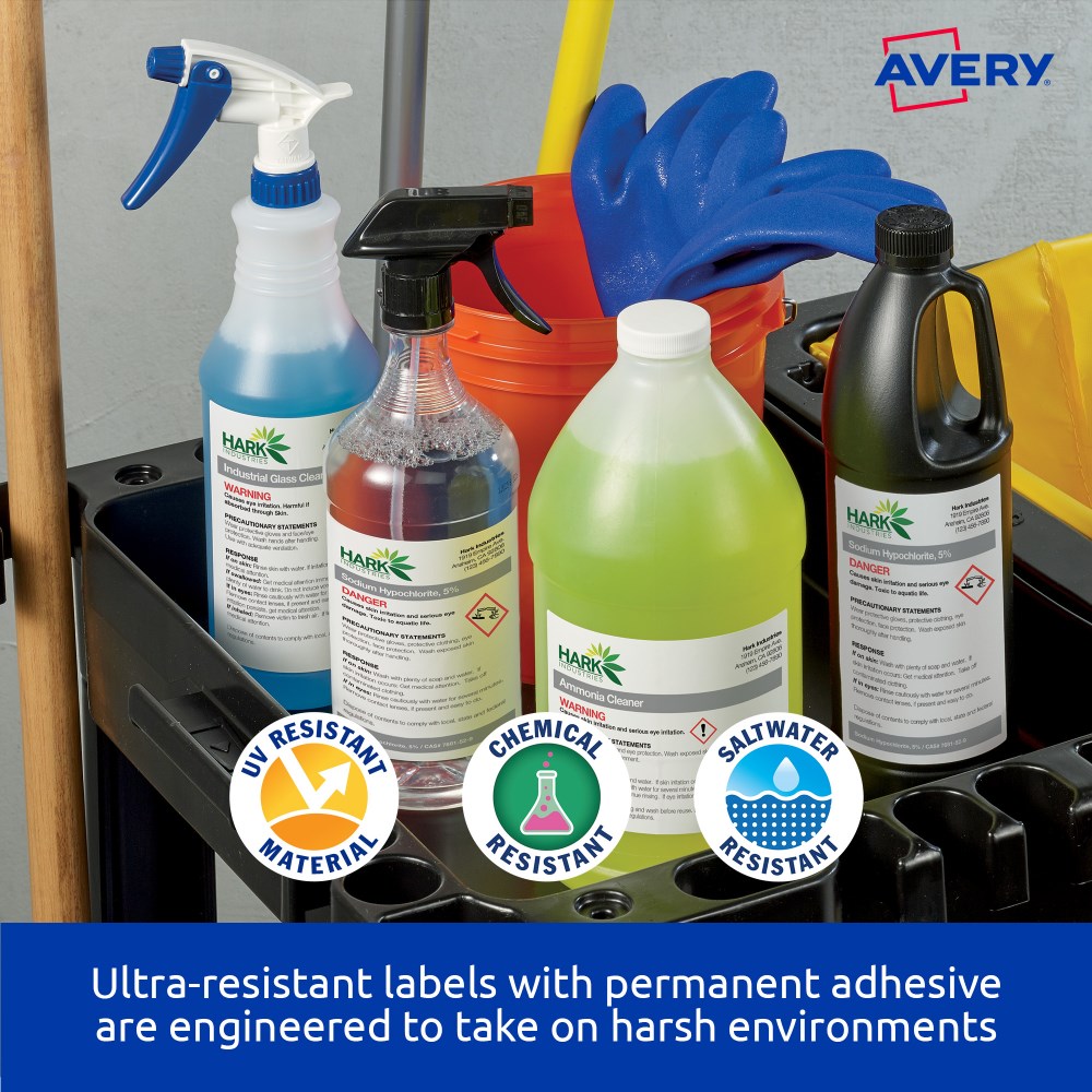 • Ultra-Resistant Labels are saltwater resistant and certified for GHS Chemical Labelling with permanent adhesive and engineered to take on harsh environments.