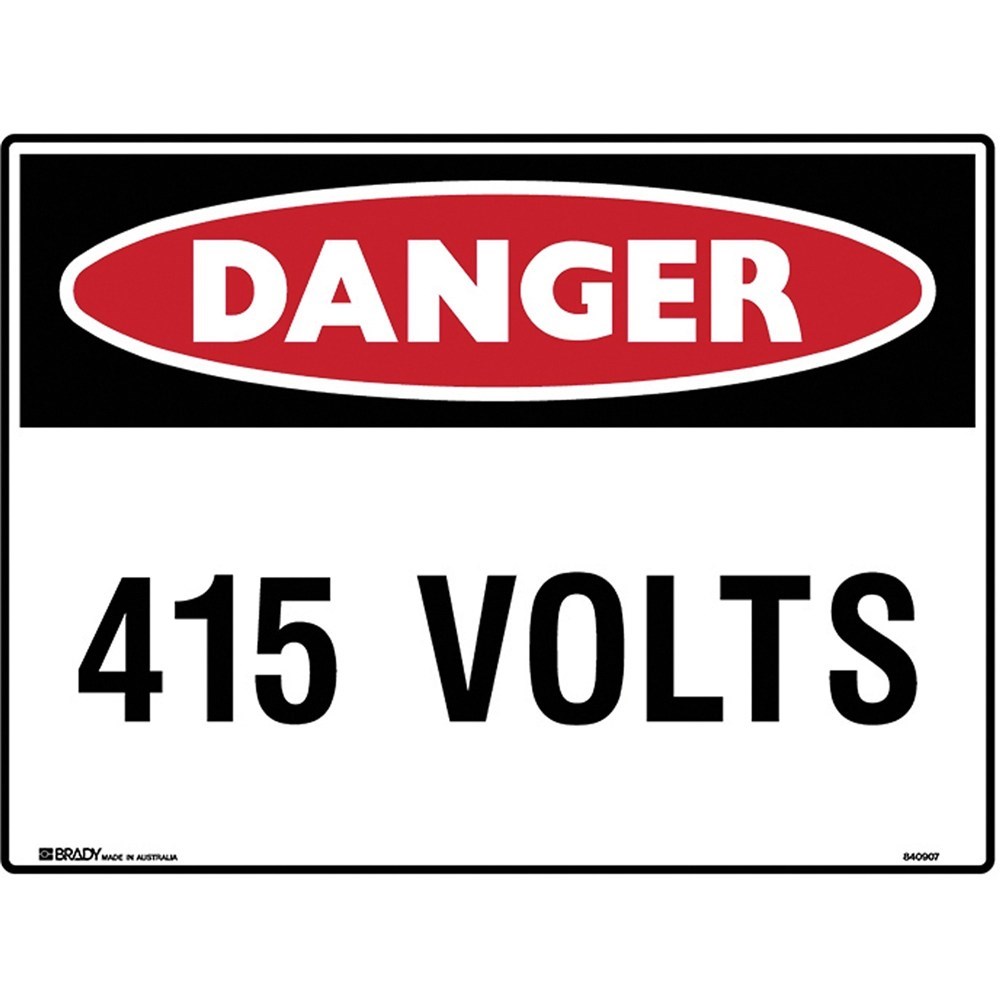 Brady Danger Sign 415 Volts 600W x 450mmH Polypropylene White/Red/Black