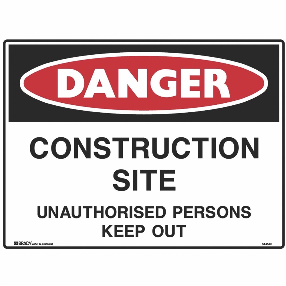 Brady Danger Sign Construction Site Unauthorised Persons Keep Out 600W x 450mmH Metal