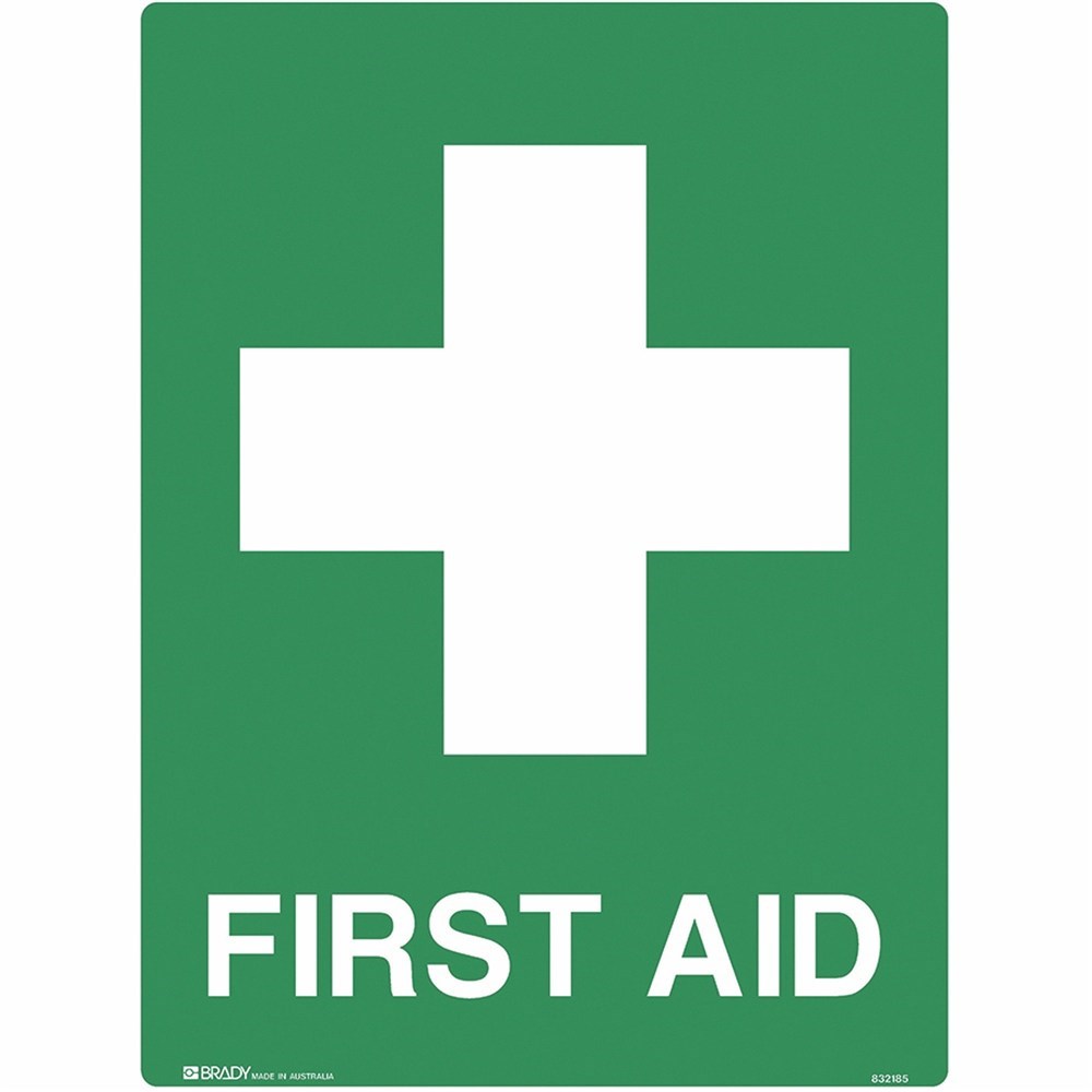 Brady Emergency Sign First Aid 450W x 600mmH Metal White/Green