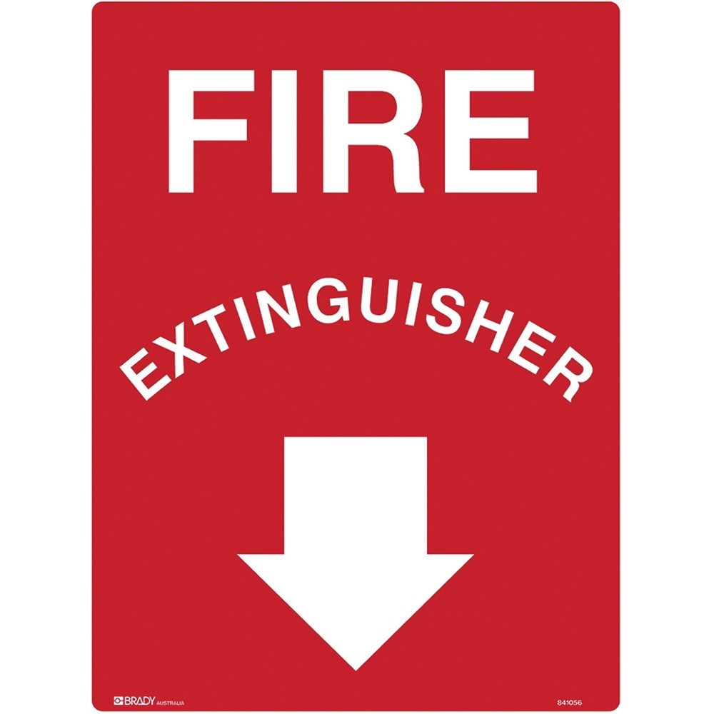Brady Fire Sign Fire Extinguisher With Arrow 450W x 600mmH Polypropylene White/Red