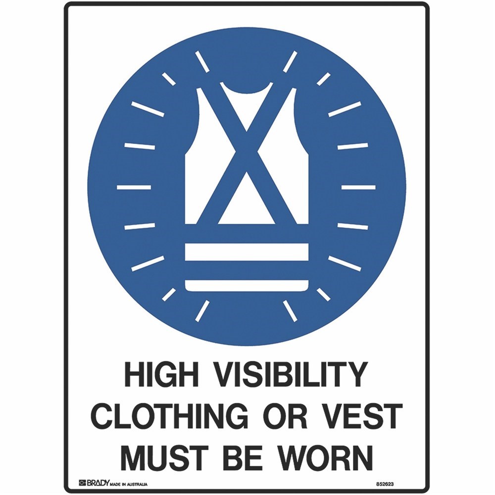 Brady Mandatory Sign High Vis Clothing Must Be Worn 450W x 600mmH Metal White/Blue