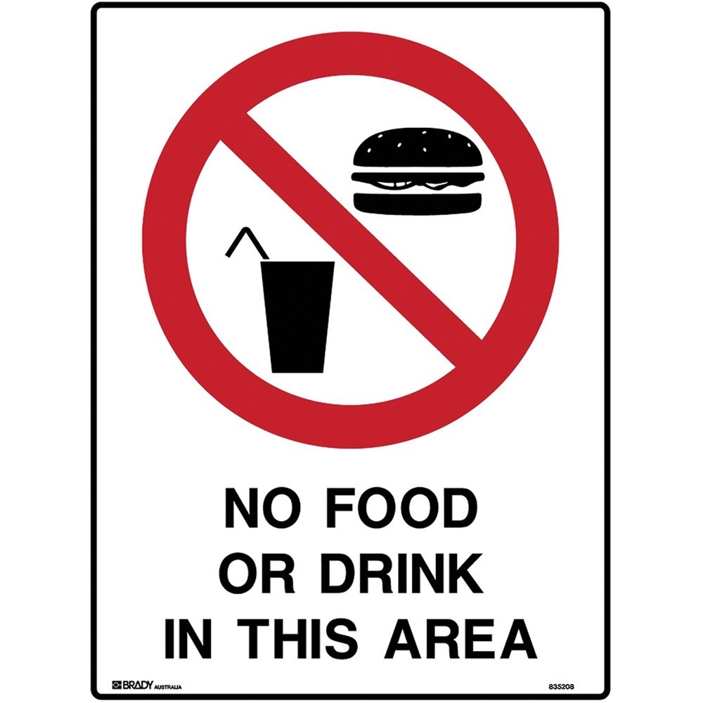 Brady Prohibition Sign No Food Or Drink In This Area 450W x 600mmH Poly White/Red/Black