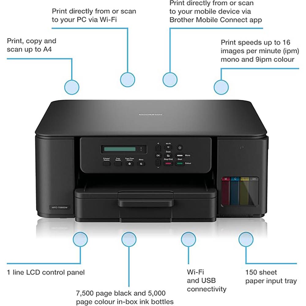 Brother DCP-T580DW Multifunction Inkjet Printer Black