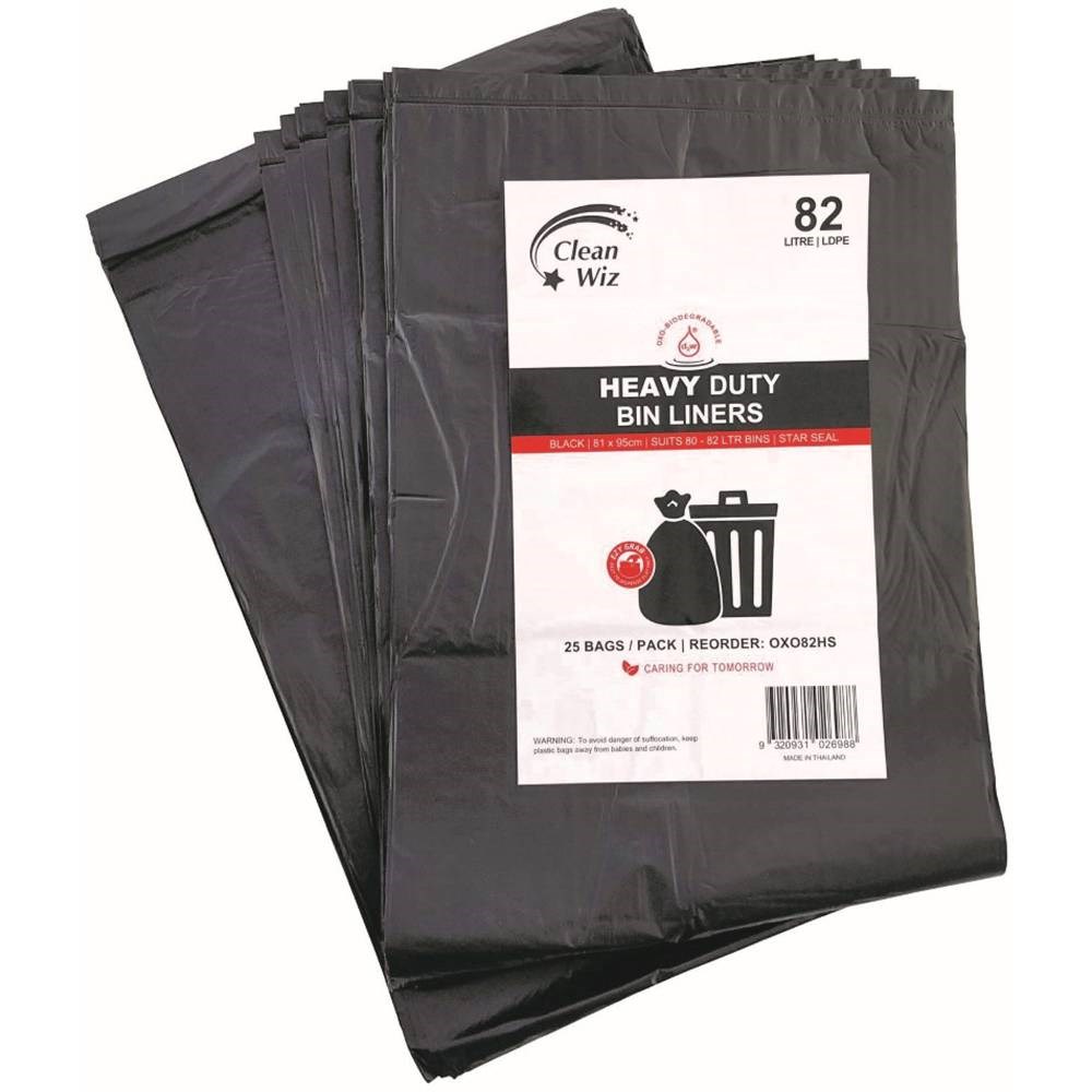 Clean Wiz Oxo-Biodegradable Heavy Duty Bin Liner 82 Litres Black Pack Of 25