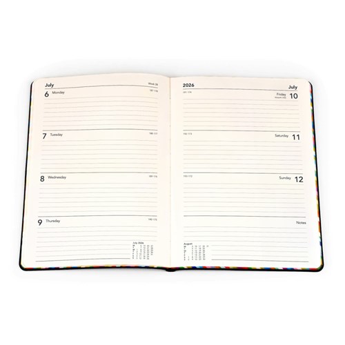 • Ribbon marker, lay flat opening and expandable back pocket.