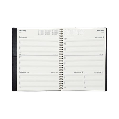 • Ideal for those 'on the move' with its double wiro binding and heavily grained metallic and matt PU cover.
