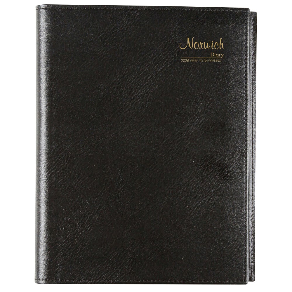 • Featuring a stylish flexible leather grain cover finished with the famous gold foil 'Norwich' logo, stitched edges and fine ivory paper.