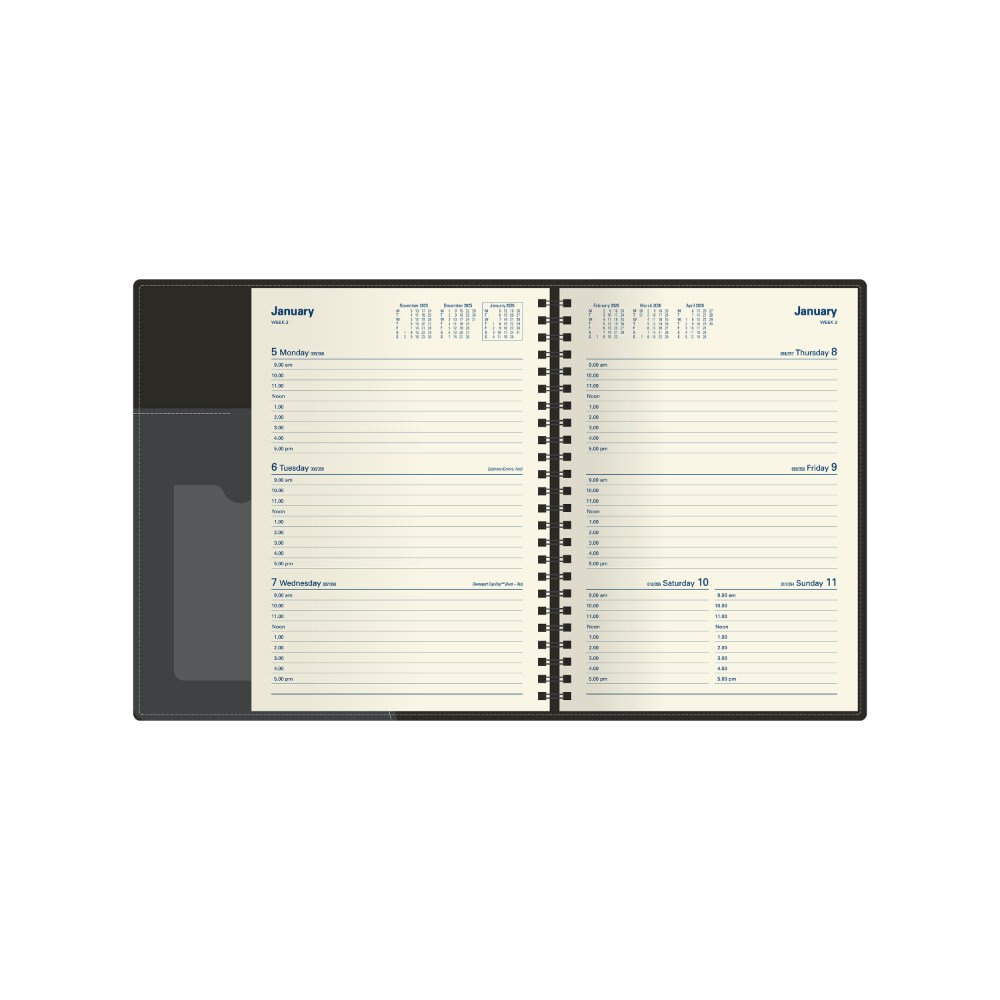 • Soft-touch padded cover. Lay flat wiro binding with ribbon marker.