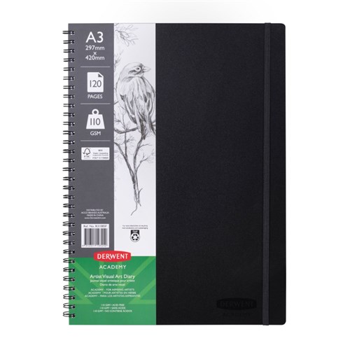Derwent Academy Visual Art Diary A3 120 Page Portrait Black