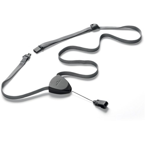 • The length of the grey, silky soft textile lanyard is adjustable from 240mm to 500mm.