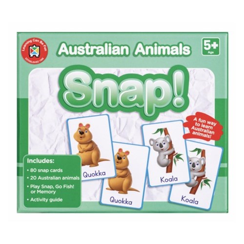 • Includes: 80 snap cards, 20 Australian animals and activity guide.