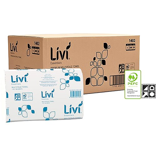 Livi Essentials Hand Towel Multifold 1 Ply 200 Sheet Box Of 20