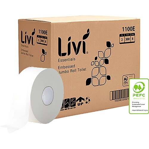 Livi Essentials Toilet Paper Jumbo Roll 2 Ply 300m Box Of 8