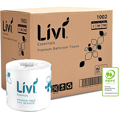 Livi Essentials Toilet Paper Rolls 2 Ply 700 Sheets Box Of 48