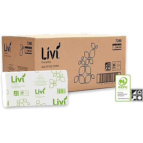 Livi Everyday Hand Towel Multifold 1 Ply 200 Sheets Box Of 20