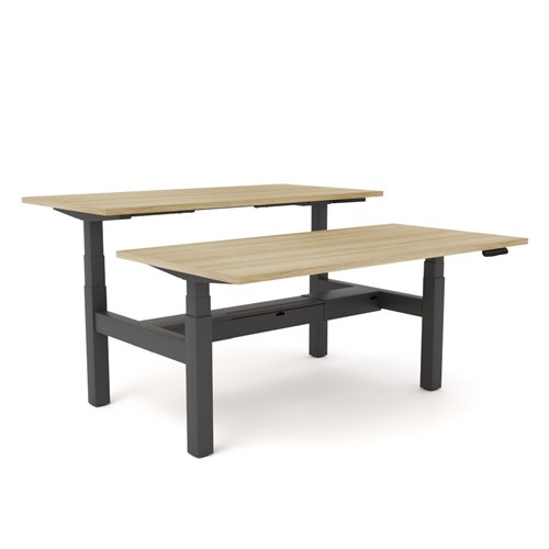 OLG Agile Motion Double Sided Desk + Cable Tray 1500Wx1500Dx 620-1270mmH Black/New Oak