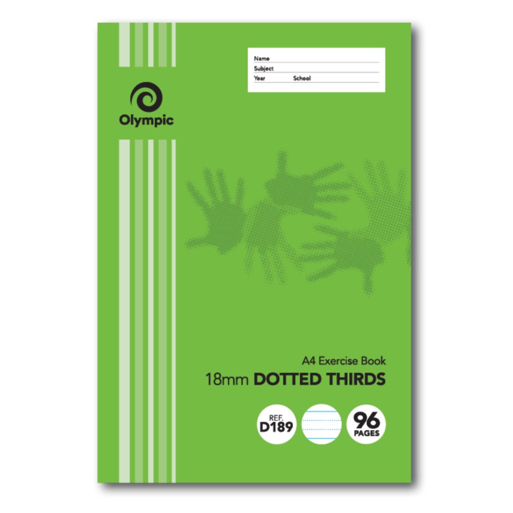 Olympic D189 Exercise Book A4 96 Page 18mm Dotted Thirds With Red Margin