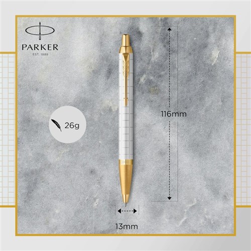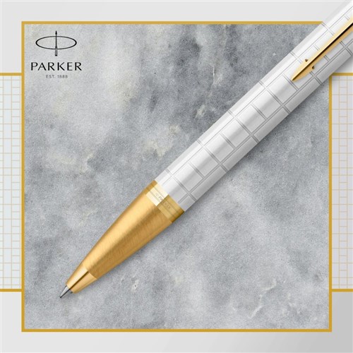 Parker IM Premium Ballpoint Pen Pearl Gold Trim Blue Refill
