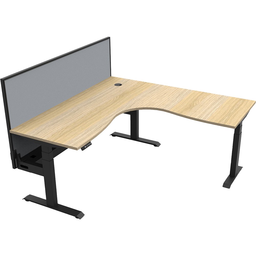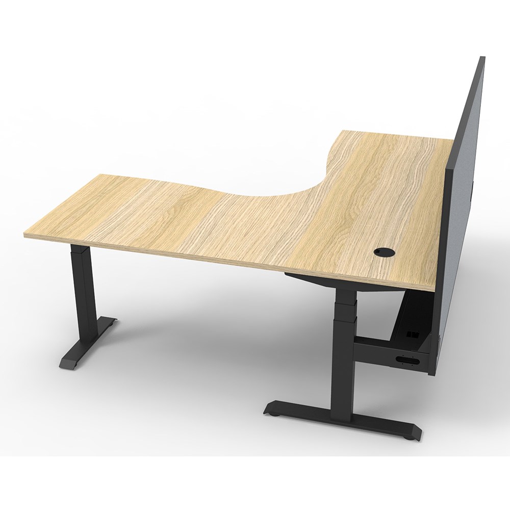 • Dual Motor 3 stage motorised legs. Corner Workstation with Cable Tray and Screen.
