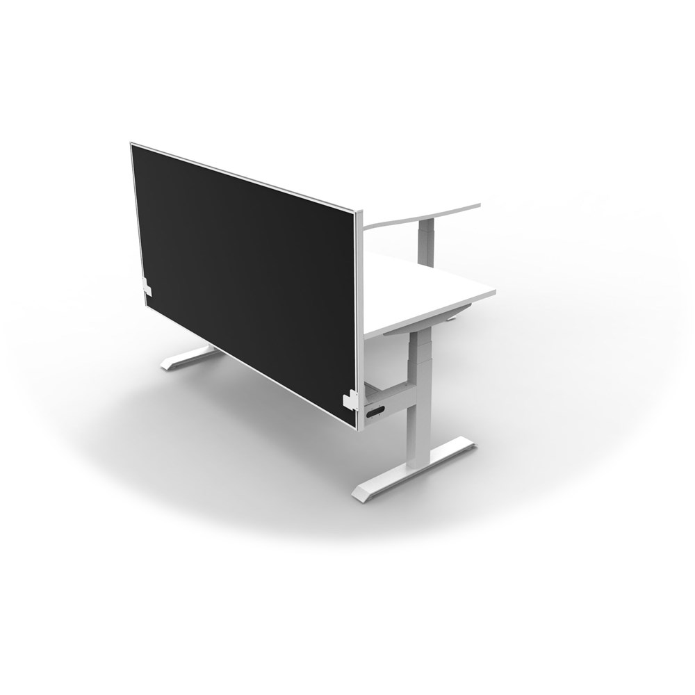 • Includes pinnable privacy screen in black fabric with matching white powder coated frame. 900mm H x 30mm T.