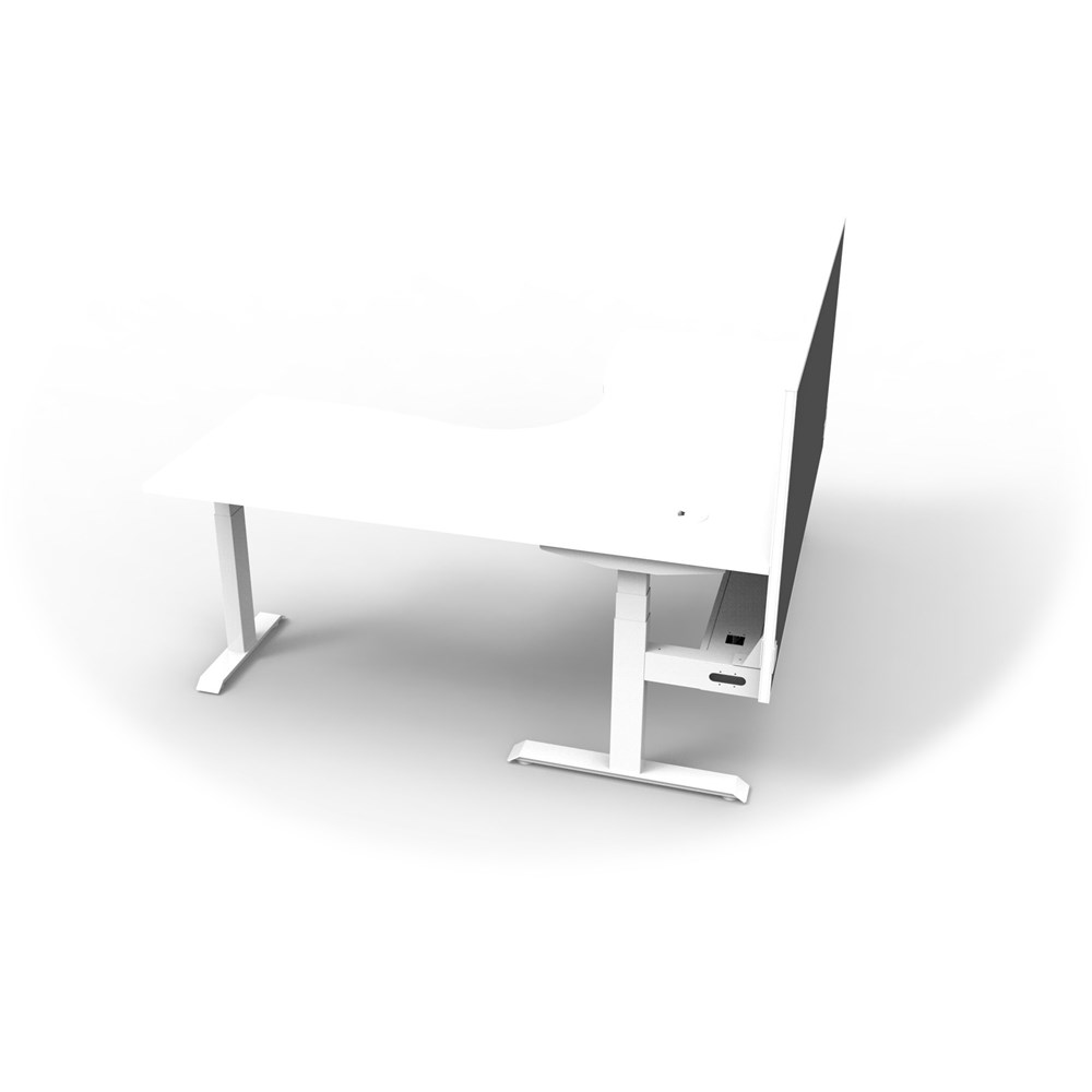 • Dual Motor 3 stage motorised legs. Corner Workstation with Cable Tray and Screen. 140kg weight loading capacity.