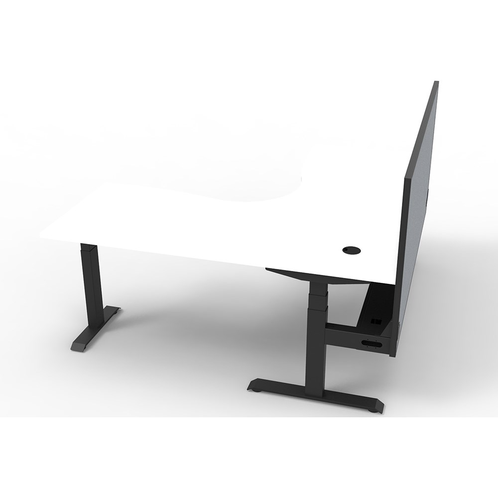 • Dual Motor 3 stage motorised legs. Corner Workstation with Cable Tray and Screen.