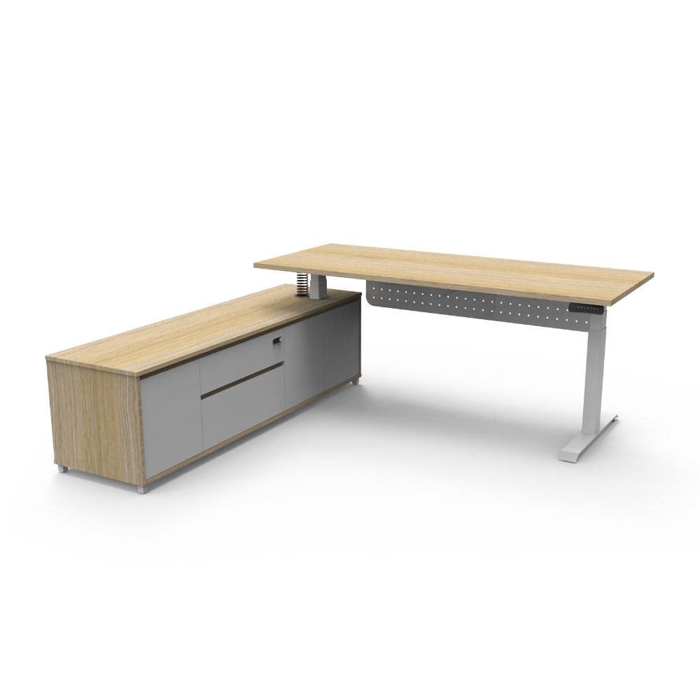 Rapidline Boost+ Executive Desk + LHS Cabinet+Panel 2020W x 1936D x 620-1270mmH Oak/Wht