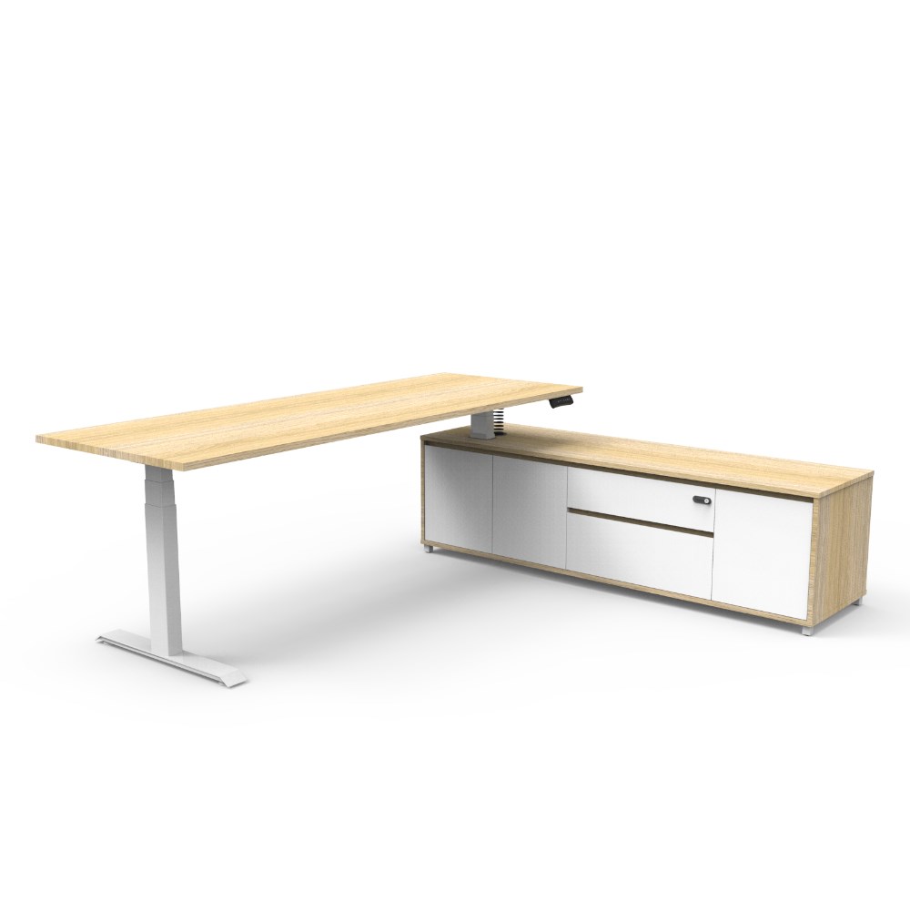 Rapidline Boost+ Executive Desk + RHS Cabinet 2270W x 1936D x 620-1270mmH Oak/White