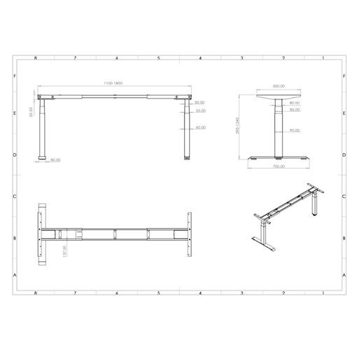 • Frame Dimensions: 1100mm-1800W x 700D x 595-1245mmH.