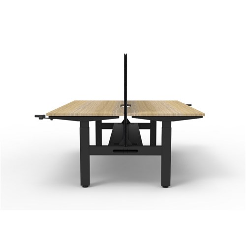 • Manual crank height adjustable 2 person back to back workstation with Natural Oak top and Black Satin frame, Black Eco screen and cable tray.