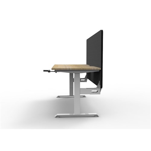 • Manual crank height adjustable single sided workstation with Natural Oak top and White Satin frame, Black Eco screen.