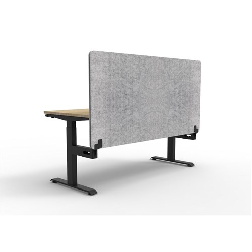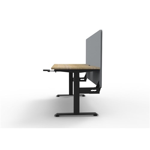 • Manual crank height adjustable single sided workstation with Natural Oak top and Black Satin frame, Grey Eco screen.