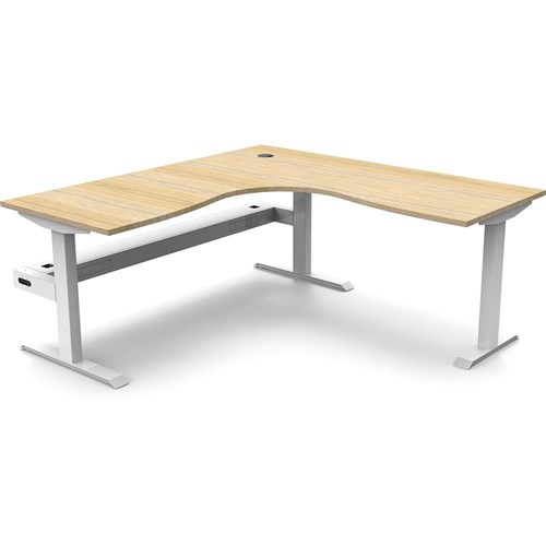 Rapidline Boost Static Corner Workstation + Tray 1800/1500W x 750D x 730mmH Oak/White