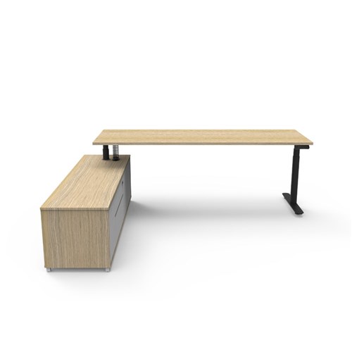 Rapidline Halo+ Executive Desk + LHS Cabinet 2270W x 1936D x 620-1270mmH Oak/Black