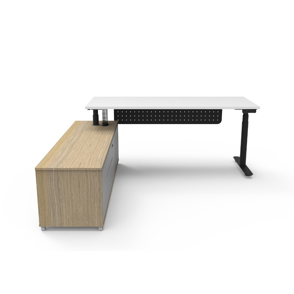 Rapidline Halo+ Executive Desk + LHS Cabinet + Panel 2020W x 1936D x 620-1270mmH White/Blk
