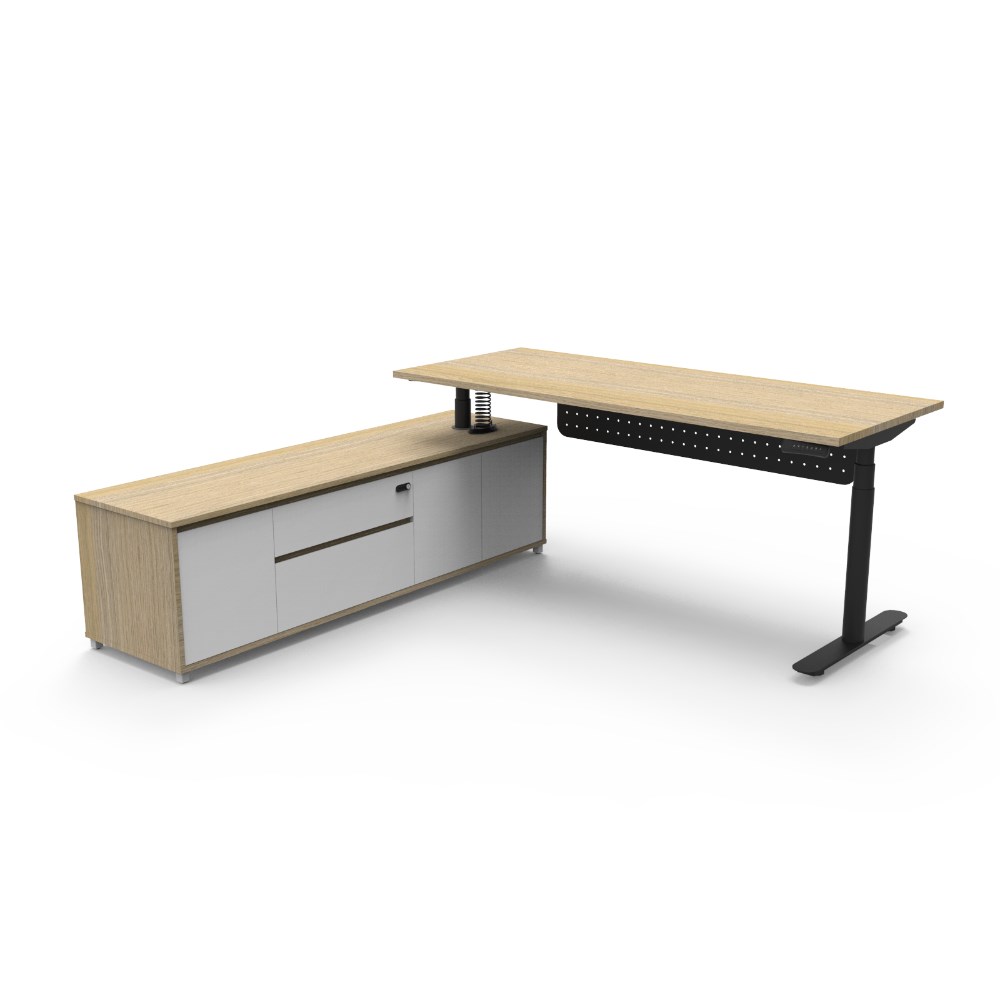 Rapidline Halo+ Executive Desk + LHS Cabinet + Panel 2020W x 2011D x 620-1270mmH Oak/Black