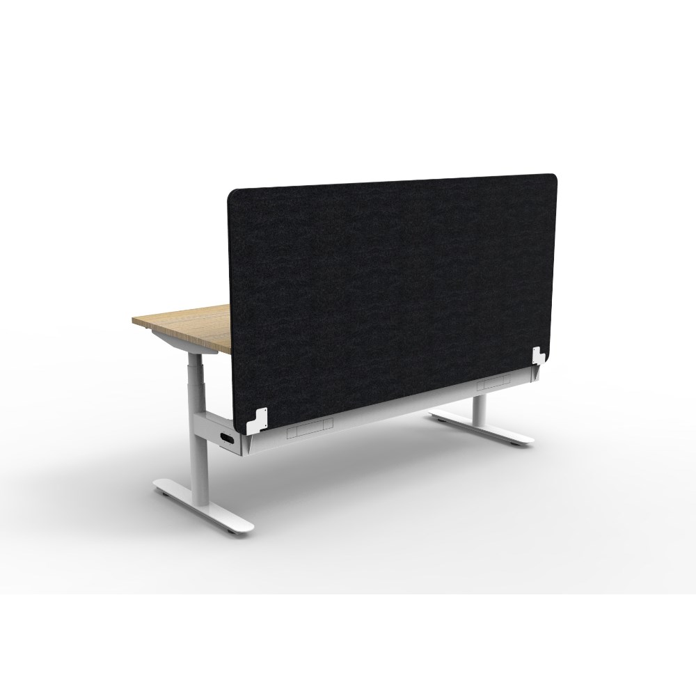 Rapidline Halo+ Single Sided Workstation + Black Eco Screen +Tray 1200Wx620-1270mmH Oak/Wh
