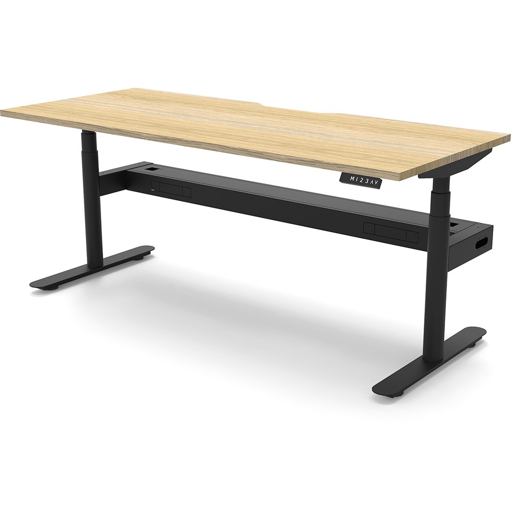 • 70mm diameter round column legs. 700mm wide foot size with adjustable leveling feet, return foot: 700mm. Comes with cable tray for cable management.