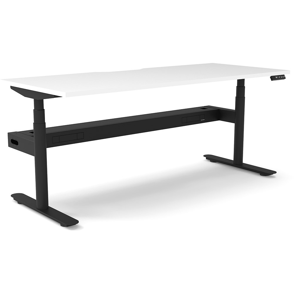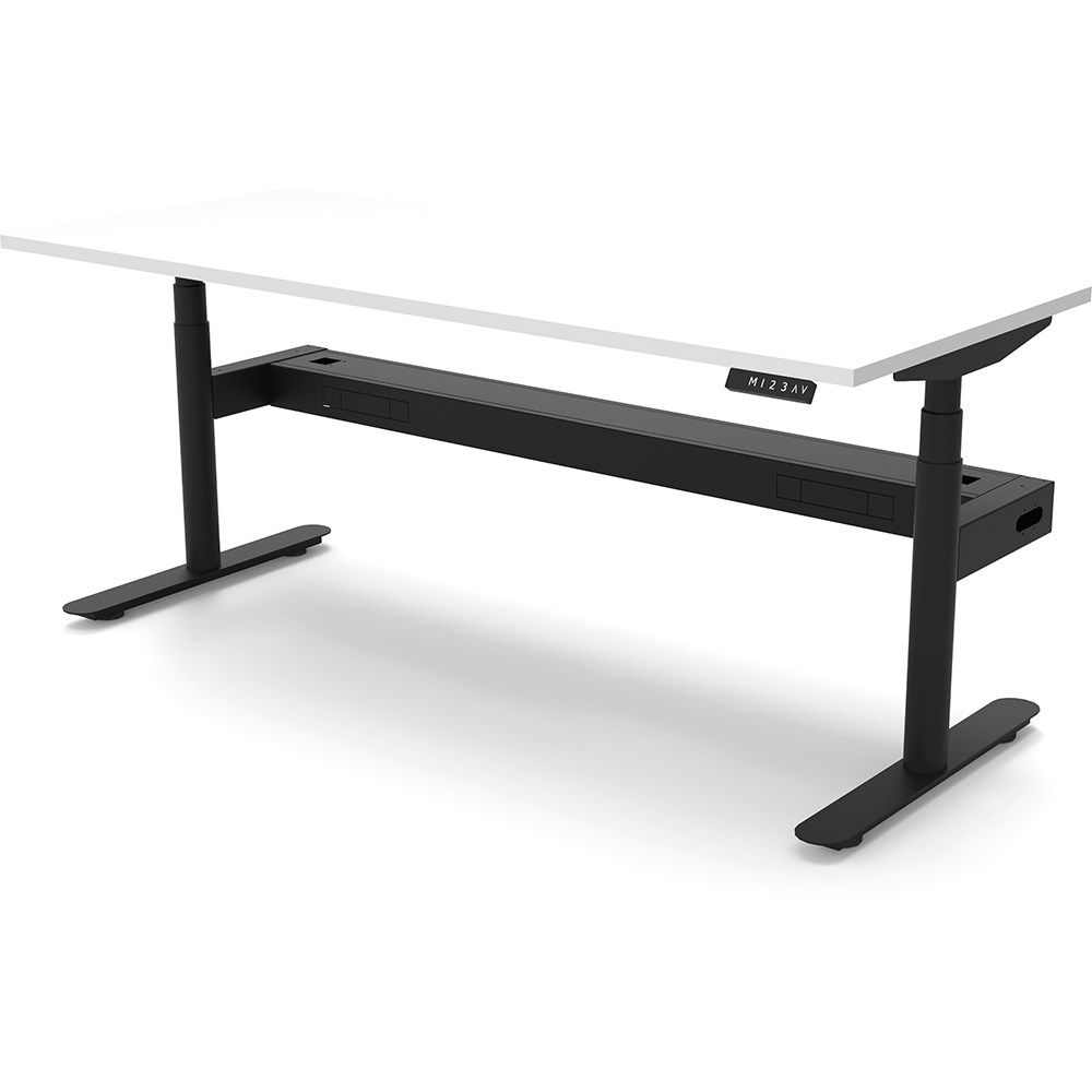 • 70mm diameter round column legs. 700mm wide foot size with adjustable leveling feet, return foot: 700mm. Comes with cable tray for cable management.
