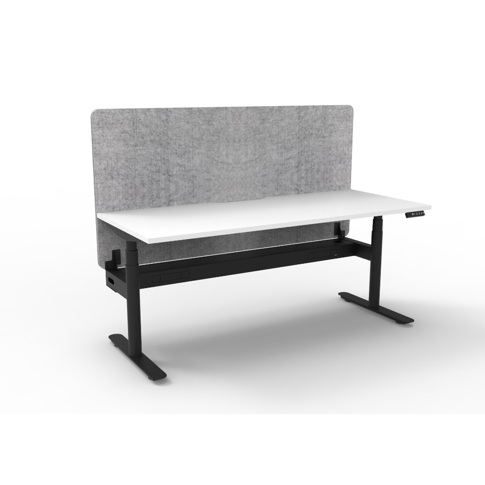 Rapidline Halo+ Single Sided Workstation + Grey Eco Screen +Tray 1500Wx620-1270mmH Wht/Bl