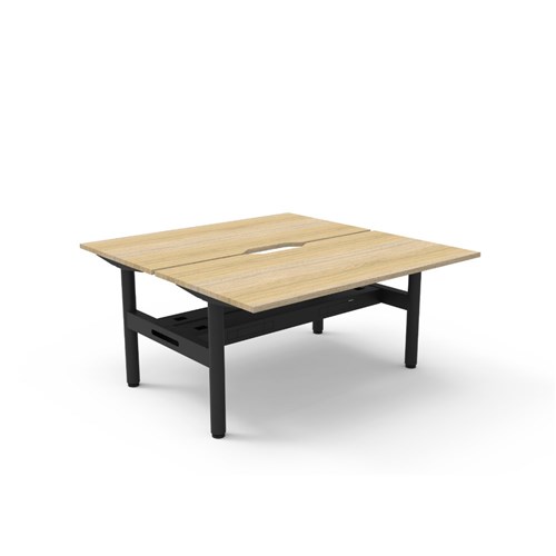 Rapidline Halo Static Back To Back Workstation + Cable Tray 2 Person 1500Wx730mmH Oak/Blk