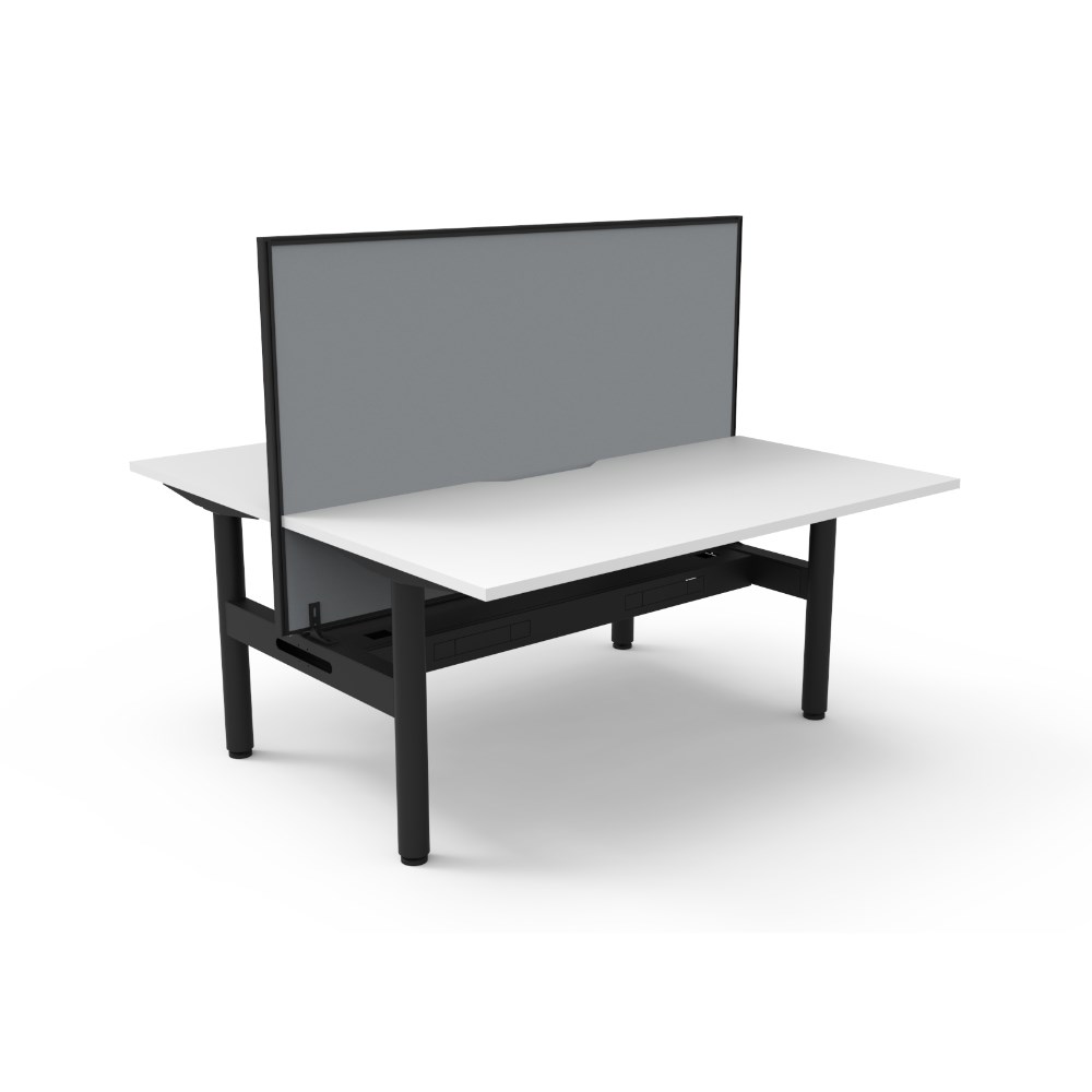 • Natural White top Black Satin frame. Double sided workstation with screen and cable tray.