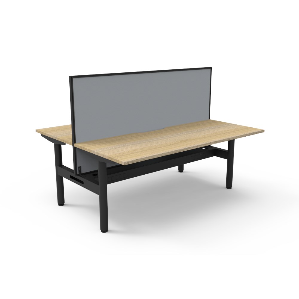 Rapidline Halo Static Back To Back Workstation+Screen+Tray 2 Person 1800W x 1330mmH Oak/Blk