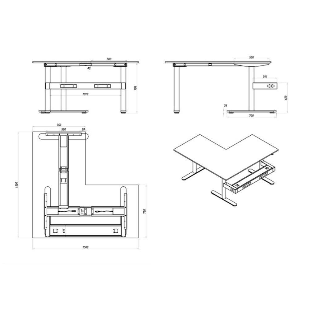 • Desk Dimensions: 1500W x 1500W x 750D x 730mmH. Height With Screen: 1330mm.