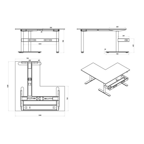 • Desk Dimensions: 1500W x 1500W x 750D x 730mmH. Height With Screen: 1330mm.