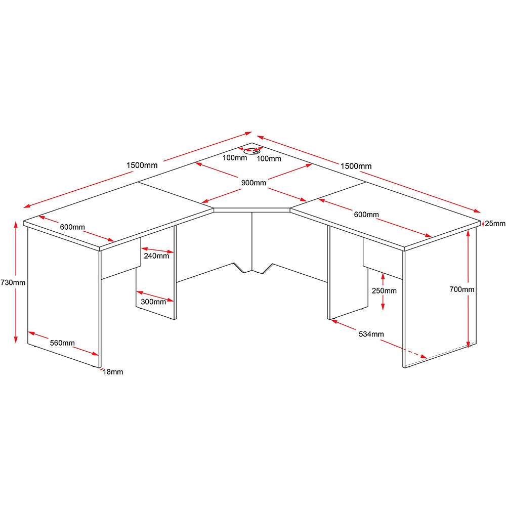 • 3 piece corner workstation.